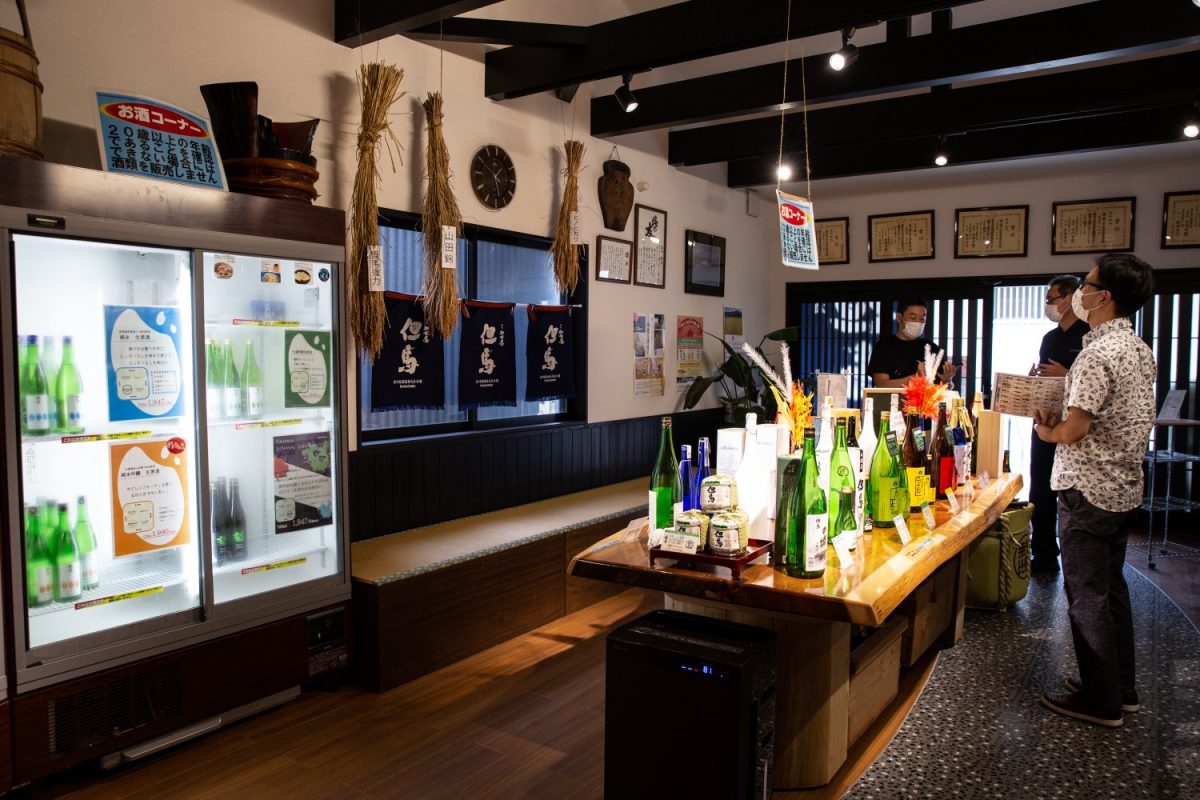 蔵に併設された酒蔵直営店では、ここでしか味わえない限定酒の販売と試飲ができます。