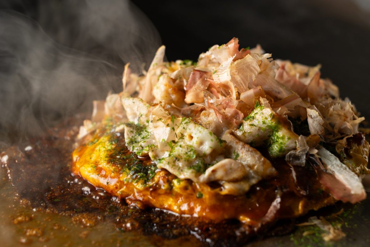 自慢の大鉄板で焼くお好み焼きは但馬牛スジ肉、八鹿豚、また日本海で水揚げされた海鮮などバリエーションも豊富でおすすめです。客席の鉄板テーブルにて熱々をお召し上がりください。
