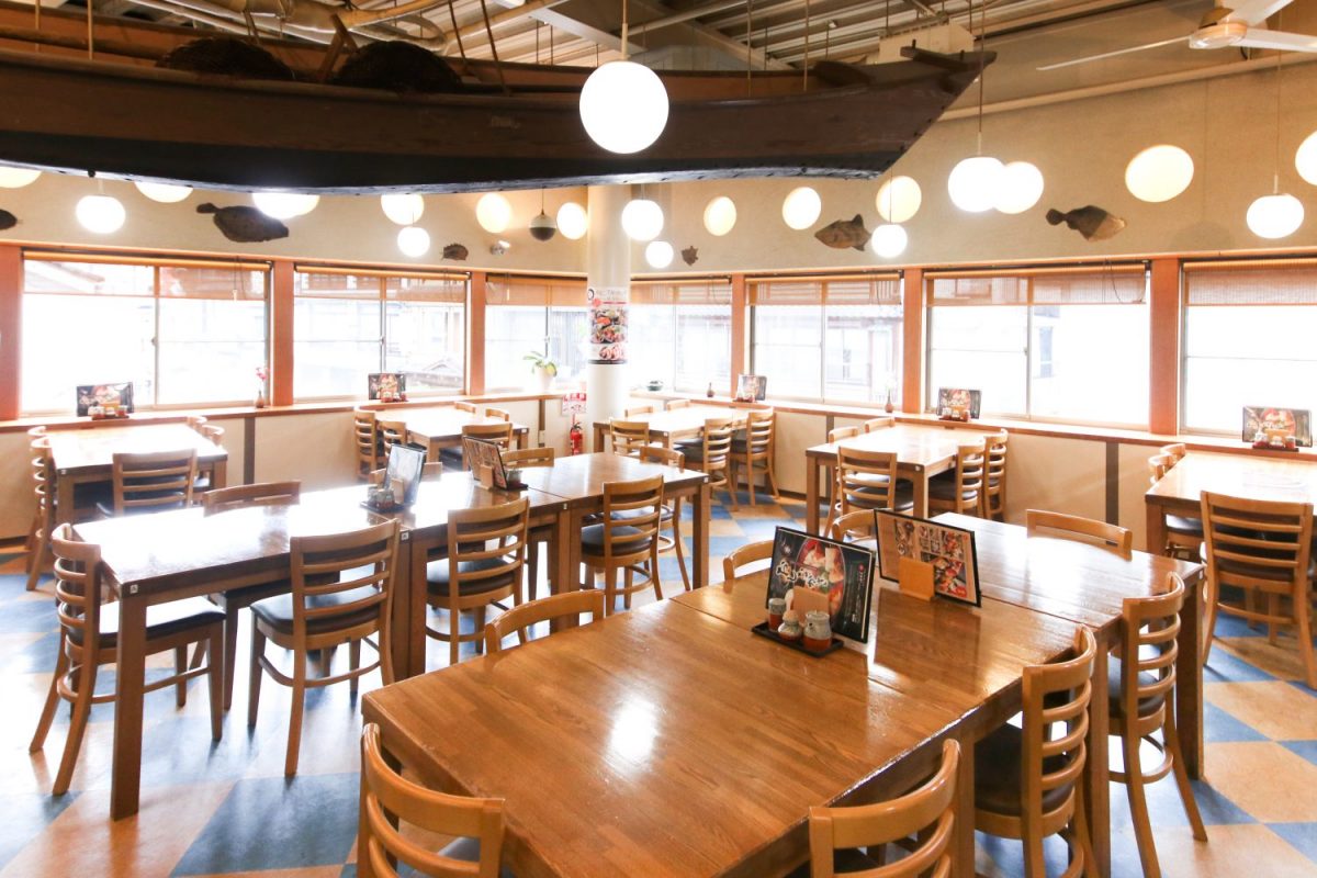 2Fはお食事処「おけしょう鮮魚の海中苑」。おけしょう鮮魚で選んでいただいた魚はもちろん、一番人気の海鮮丼や本日のオススメメニューなど、様々な料理を提供しています。是非、心ゆくまで新鮮な料理をお楽しみください。