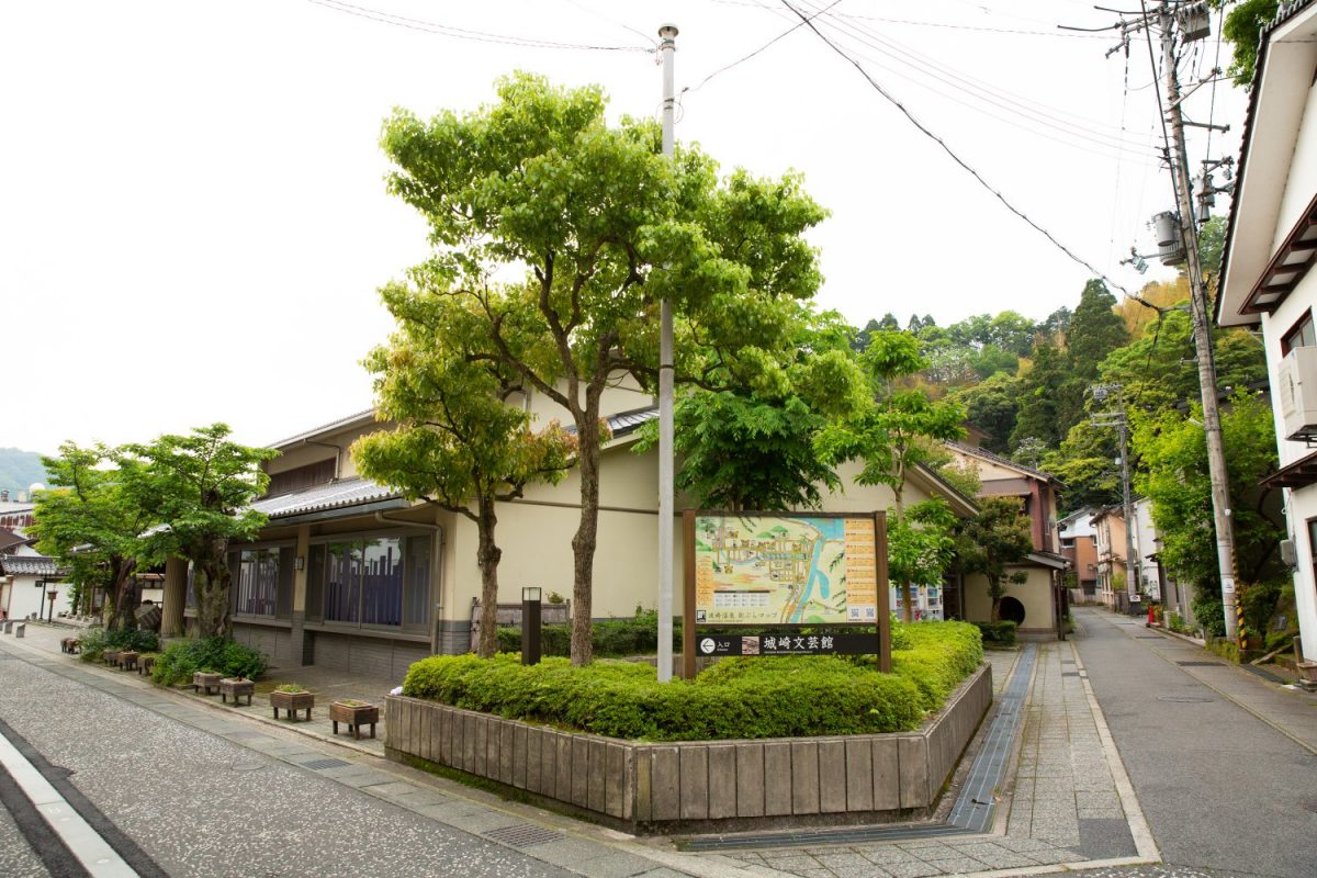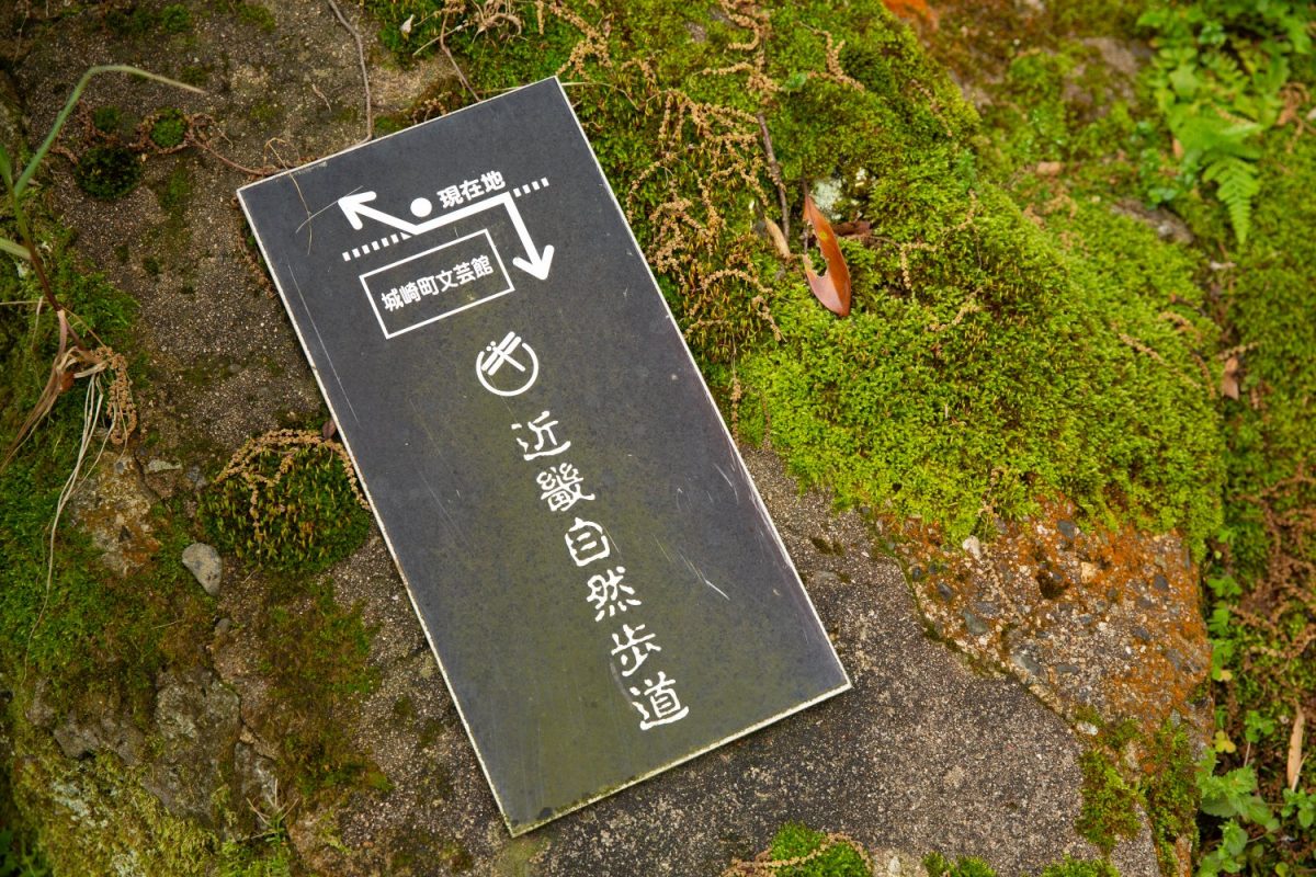 大師山ハイキングコースへの入り口は、「城崎文芸館」横に立つ表札と登山道へ繋がる階段が目印です。