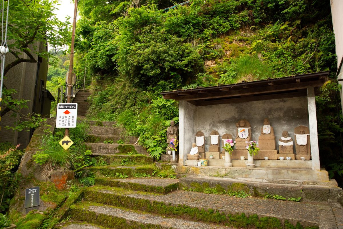 登山の無事を祈り、ここから石仏八十八ヶ所巡りの始まりです。