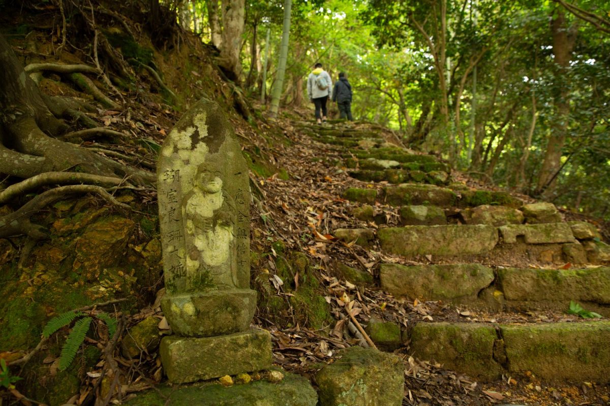 階段を登り始め、しばらくすると石仏が数体鎮座しています。