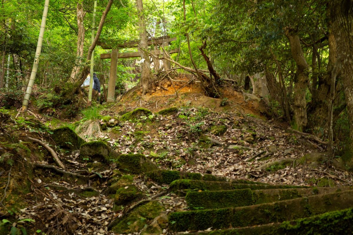 さらに登っていくと石の鳥居が見えてきました。