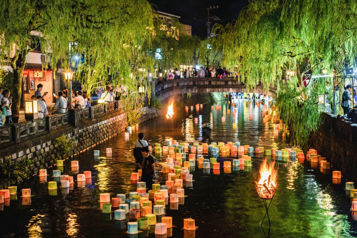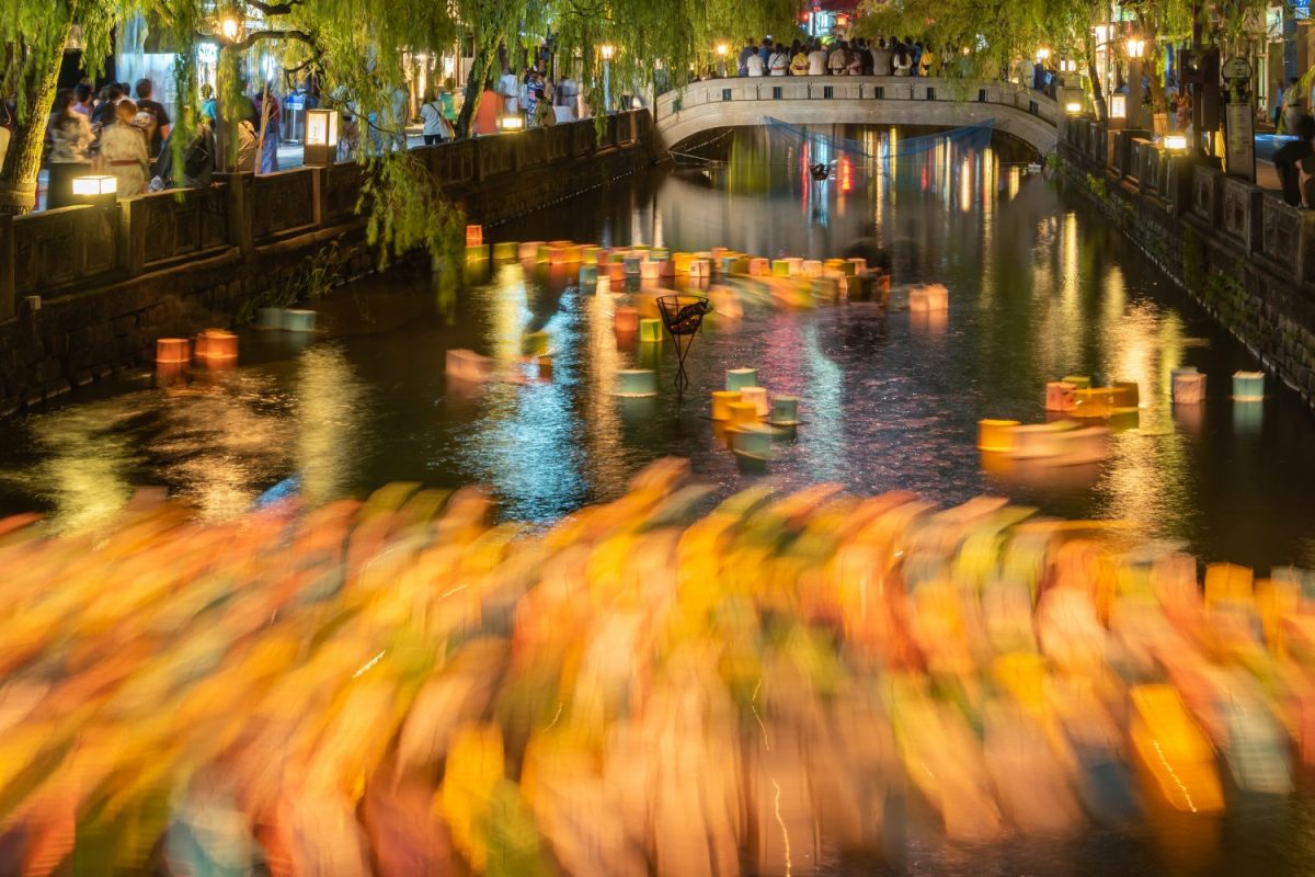 8月25日(金)のみ、花火の打ち上げ前に「大谿川納涼灯篭流し」を開催。願い事を書いた多数の灯篭は大谿川を流れ、幻想的な雰囲気を醸しながら流れていきます。